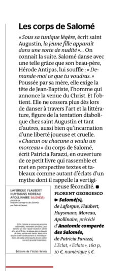 précédé de “Anatomie comparée des Salomés” par Patricia Farazzi